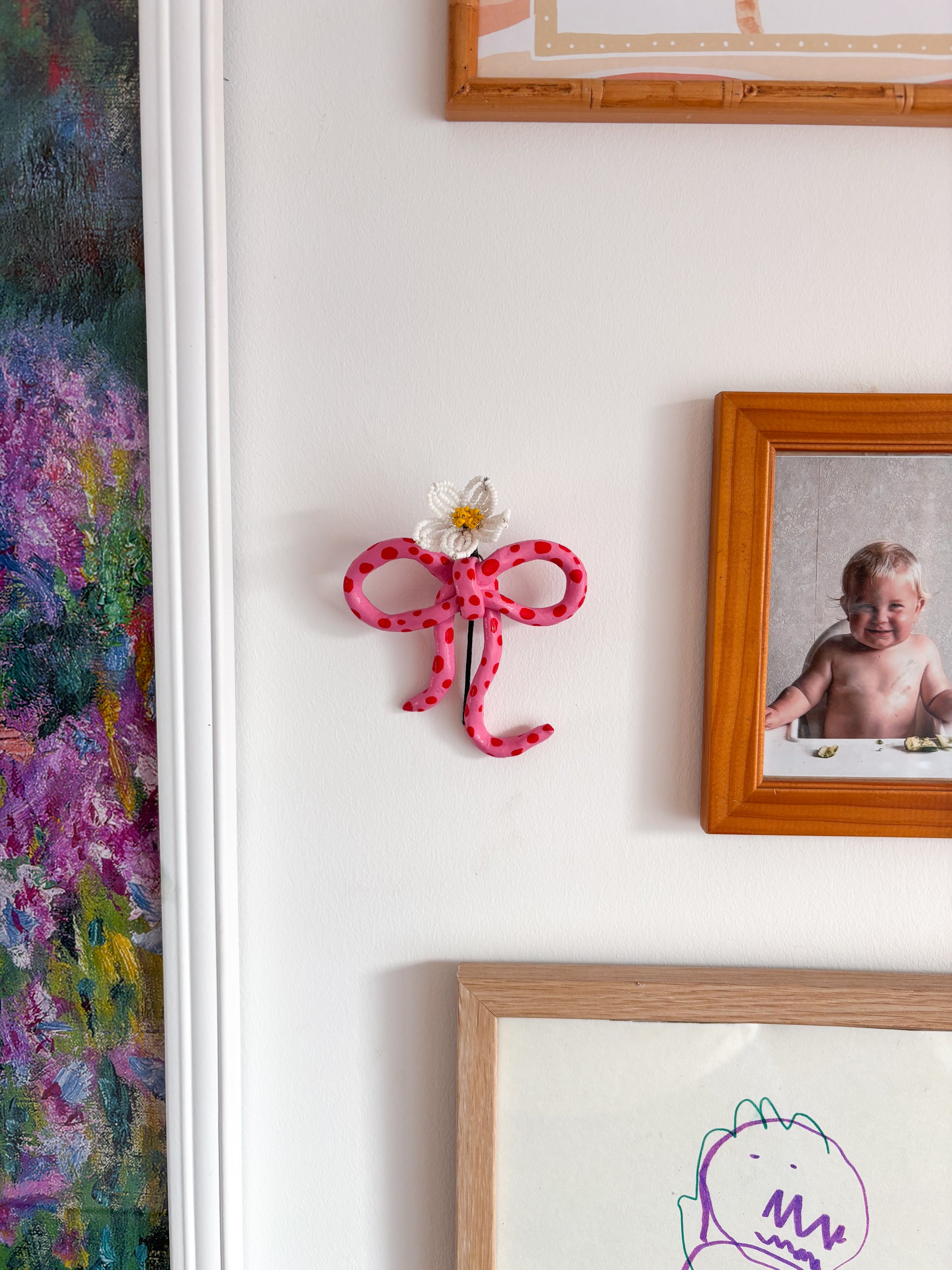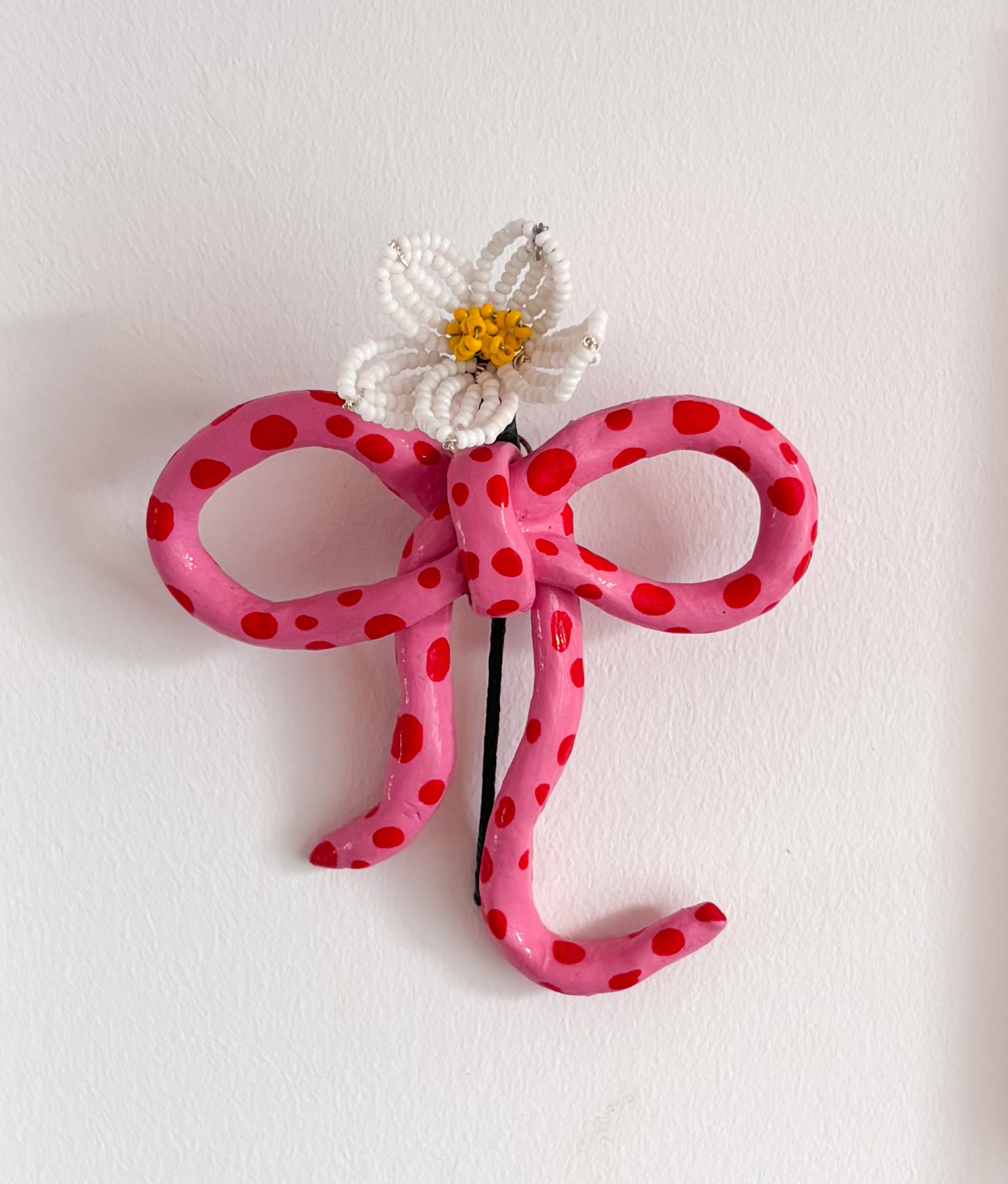 These beautiful hand sculpted bows with a glass bead flower can be customised to whatever you wish!